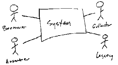 Although we were interested in how a generalized workflow system might be build, we chose to limit our efforts to exactly the system described in the problem statement. We defined that system in terms of the actors (people and computers) it would serve ...