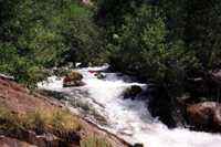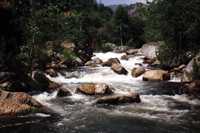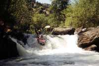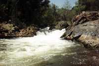 Two good drops followed by some nice continous rapids. This is a very nice alternate put-in when the gauge is a bit high for your tastes and you are planning to run to Bailey Bridge. Advance is a historic site of activity by the Kaweah Colonists who built the Colony Mill Road to Sequoia Park before the turn of the century in an attempt to log the giant sequoias in what is now Sequoia National Park. The colony went bust and the US government confiscated their road with no compensation.